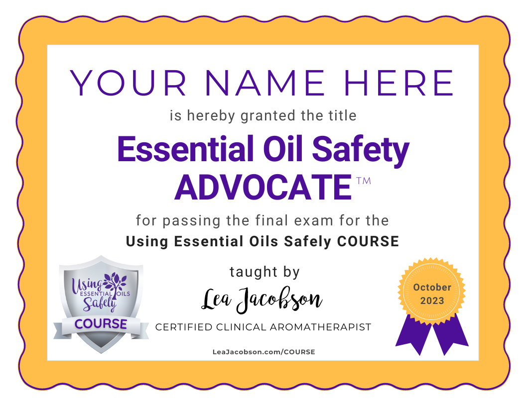 Essential Oil Safety ADVOCATE™ title + certificate so you can proudly show the world you know your stuff! (certificate value: Priceless)
