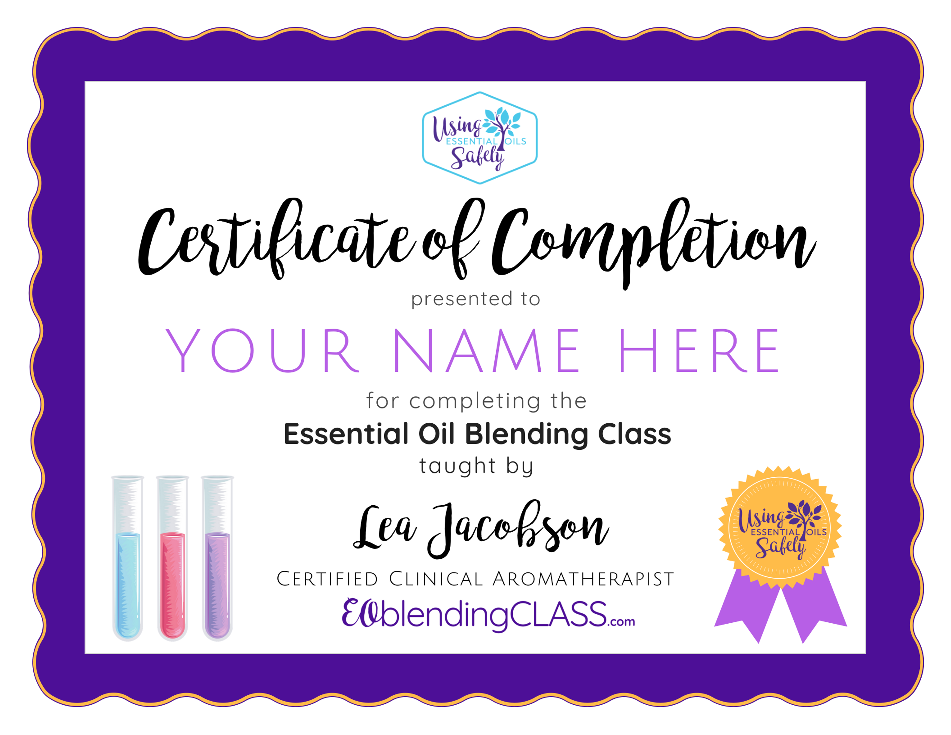 This is not an official certification course. Although you will get a certificate of completion, you won't be a "certified aromatherapist."