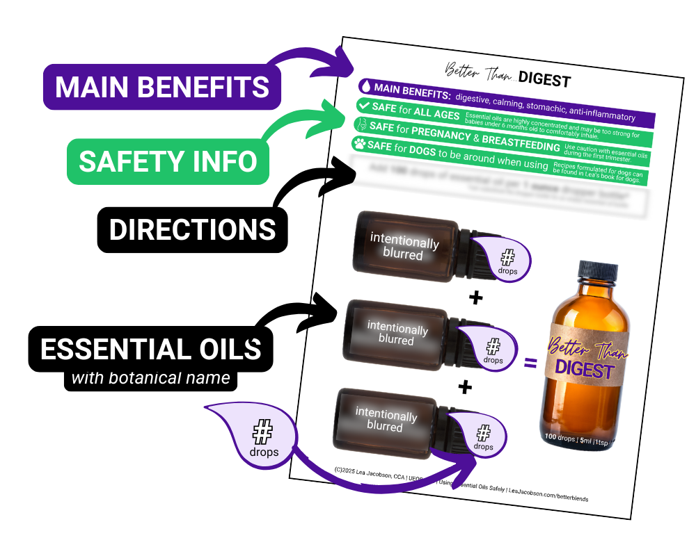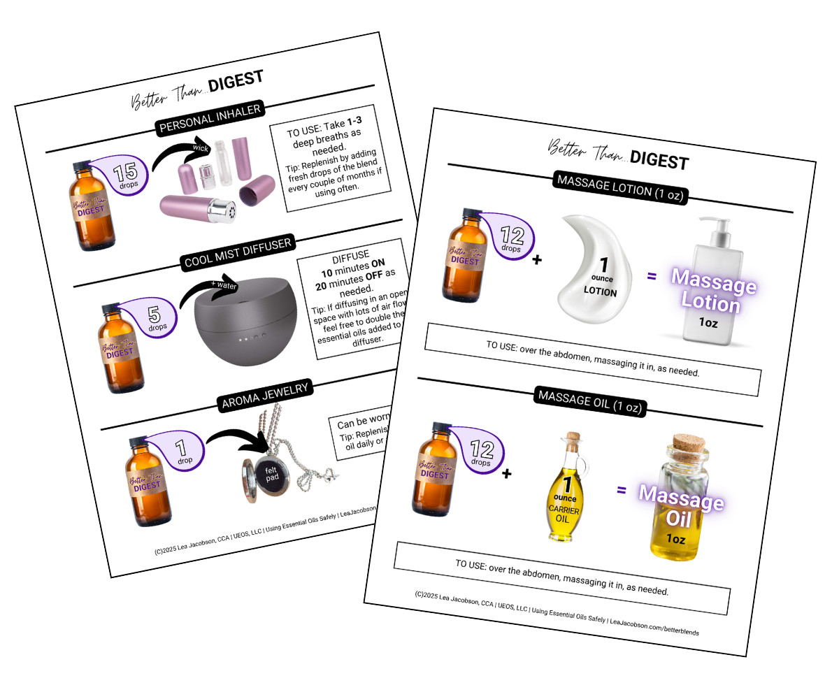 Better Than Digest Blend Recipe with inhalation instructions for Personal Inhaler, Diffuser, and Aroma Jewelry