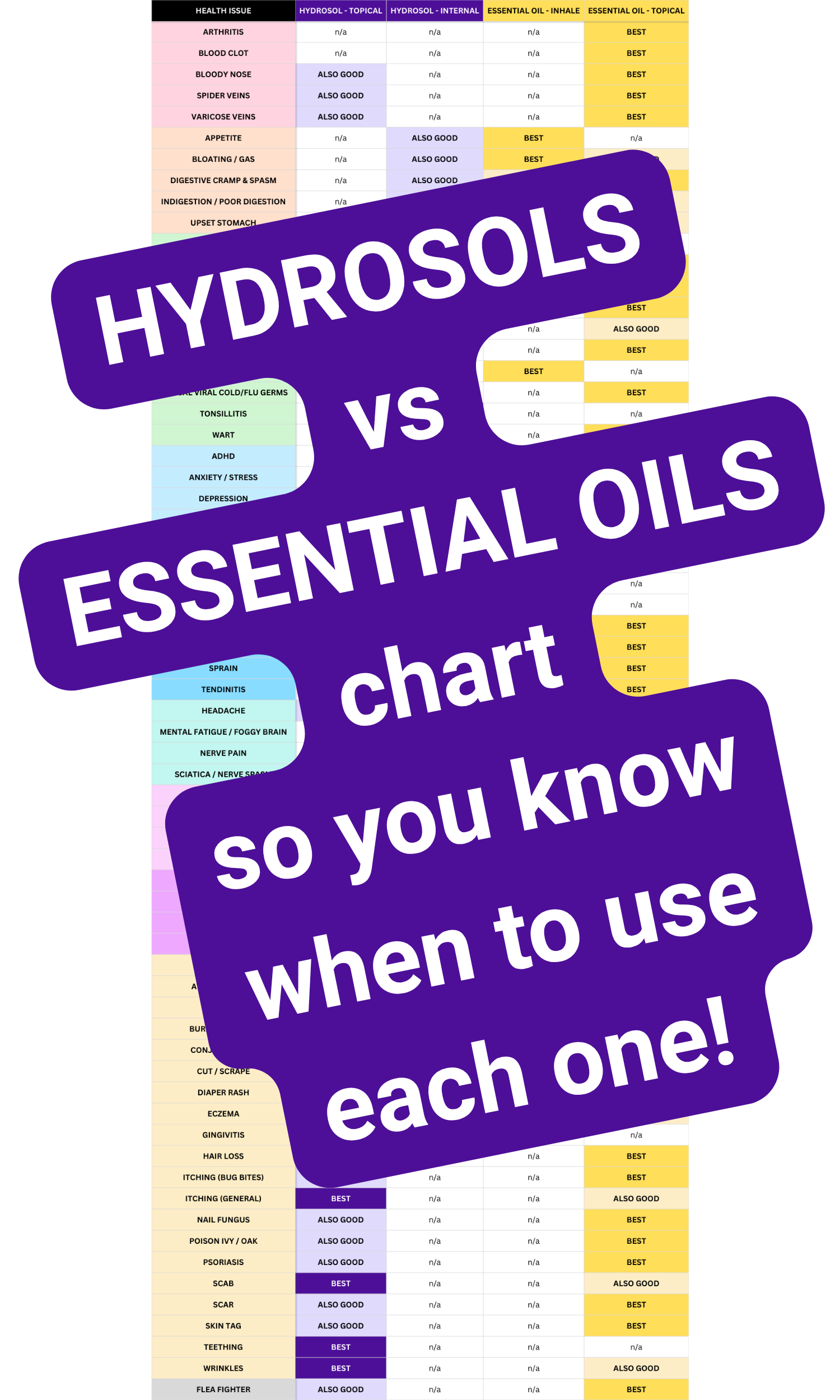 BONUS "Hydrosols vs Essential Oils" CHART!